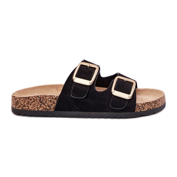 Részletek: Női papucskapuflopok öko velúr arany csatokkal fekete csatok