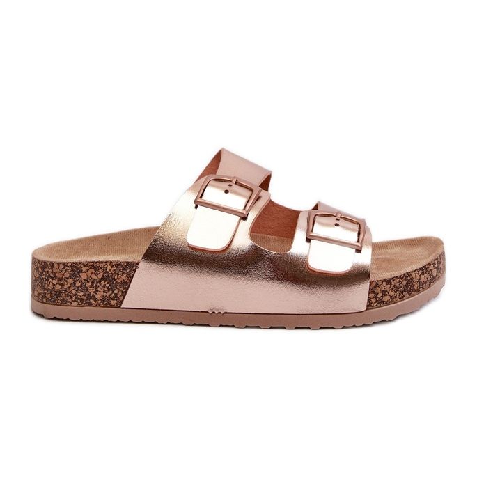 Evento Evento Női papucsok parafa emelvényen csatokkal, rose Gold, Klinesta aranysárga