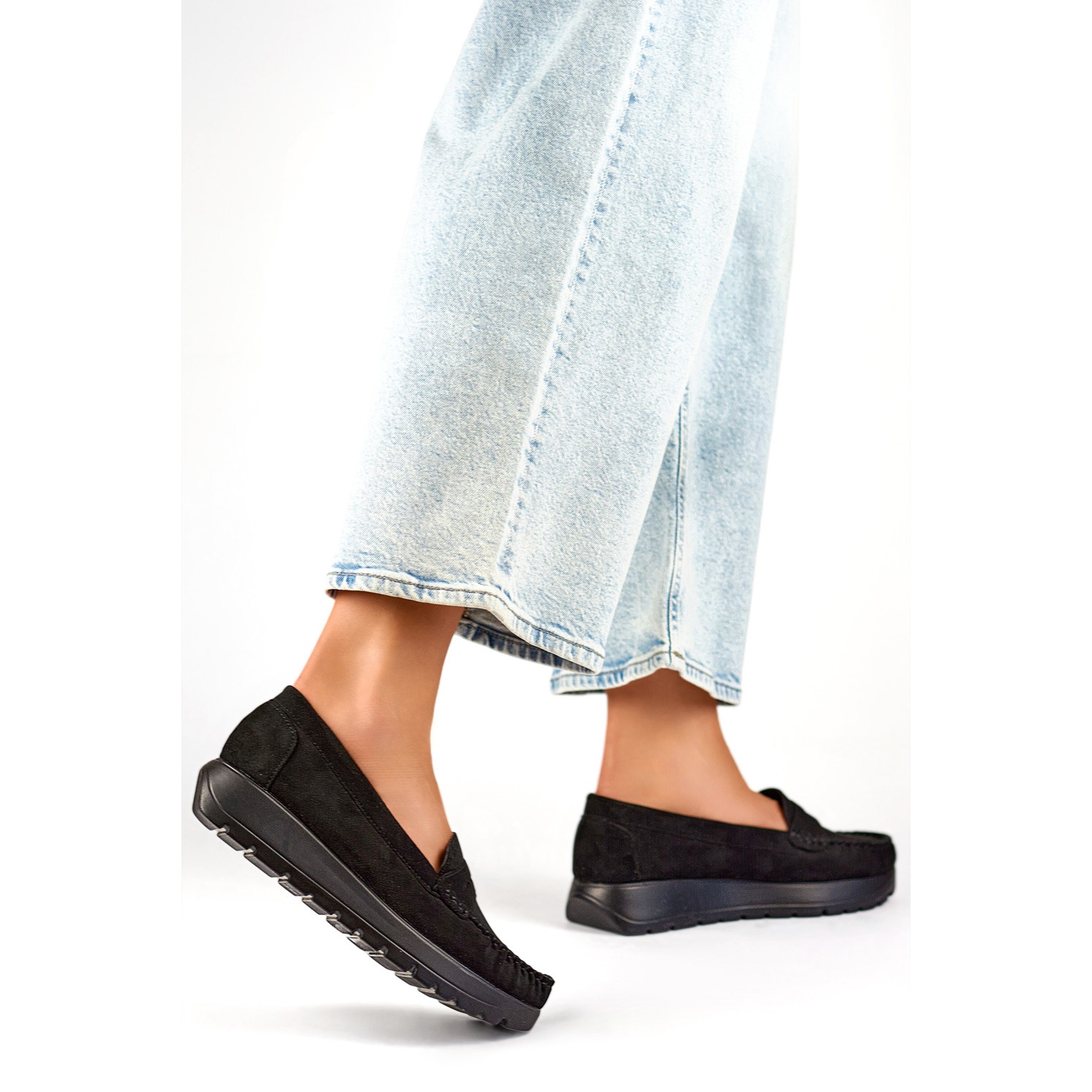 A mokaszinok természetes bőrből készült betéttel rendelkeznek, amely optimális szellőztetést és kényelmet biztosít. A 3,5 cm -es platform magassága finom eleganciát ad, és ideális megoldássá teszi őket napi és formálisabb alkalmakkor is. A stabilitást szilárd kialakítás biztosítja, és a csúszásvágás megkönnyíti a cipő felhelyezését és leválasztását.