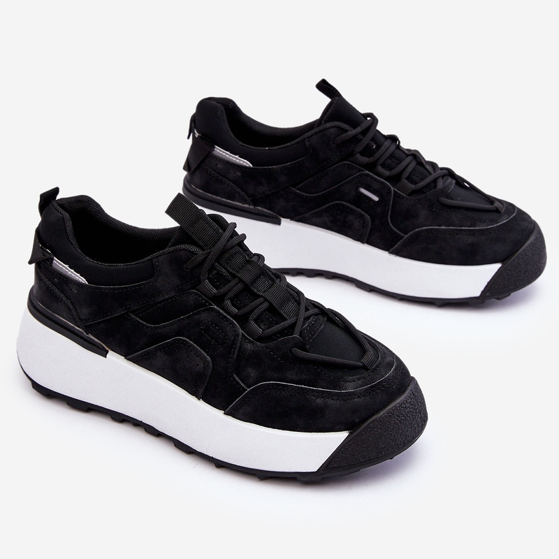 Modern, kényelmes sportcipő egy hatalmas platformon, amely hangsúlyozza a stilizációt és kissé növeli az ábrát. Modell egy klasszikus kötéssel, merevített sarok és egy fényvisszaverő elem a felső részén - minden nap tökéletes az őszi/téli szezonban.