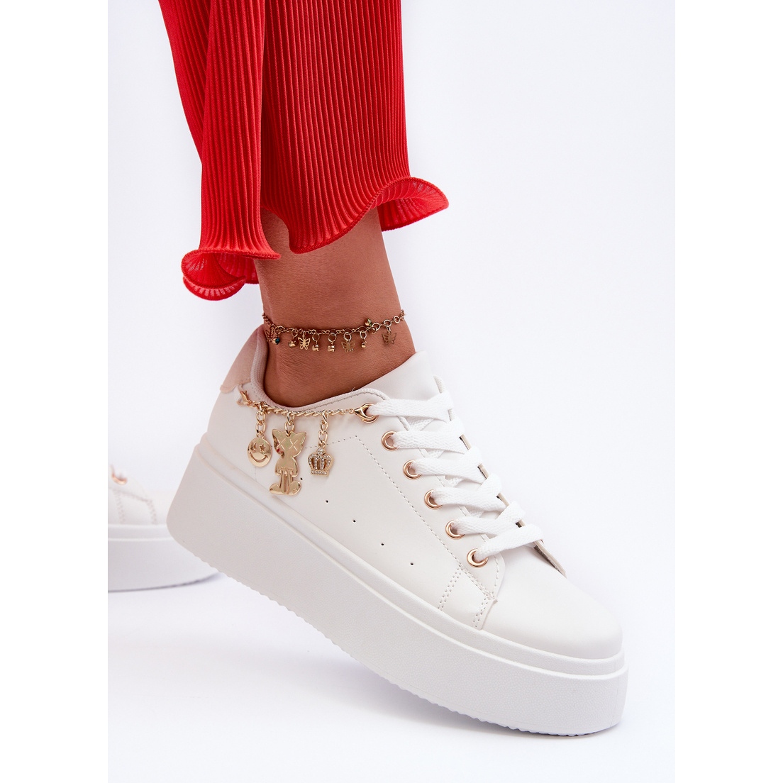 Részletek: Női Platform tornacipő medálokkal, fehér Tivissa