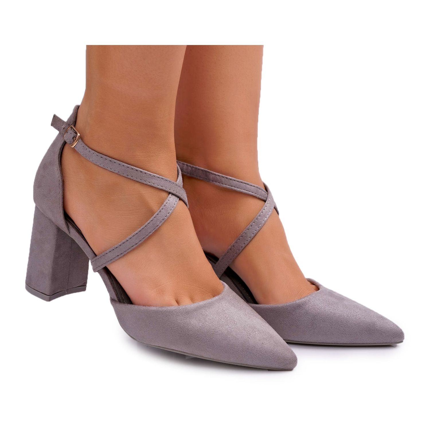 Női szivattyúk a Spitz oszlopán - szürke, velúr, időtlen vágással, amely elegáns stilizációt fog befejezni mind az iroda, mind az ünnepélyes kijárathoz. A stabil, 8 cm -es oszlopba beágyazott modell tökéletesen kialakítja a sziluettet, és a lágy kényelmi betét egész nap kényelmet nyújt. Ökológiai velúr bőrből készült, ökológiai betéttel készítve - a stílus és a kényelem iránti aggodalom a kézben jár.