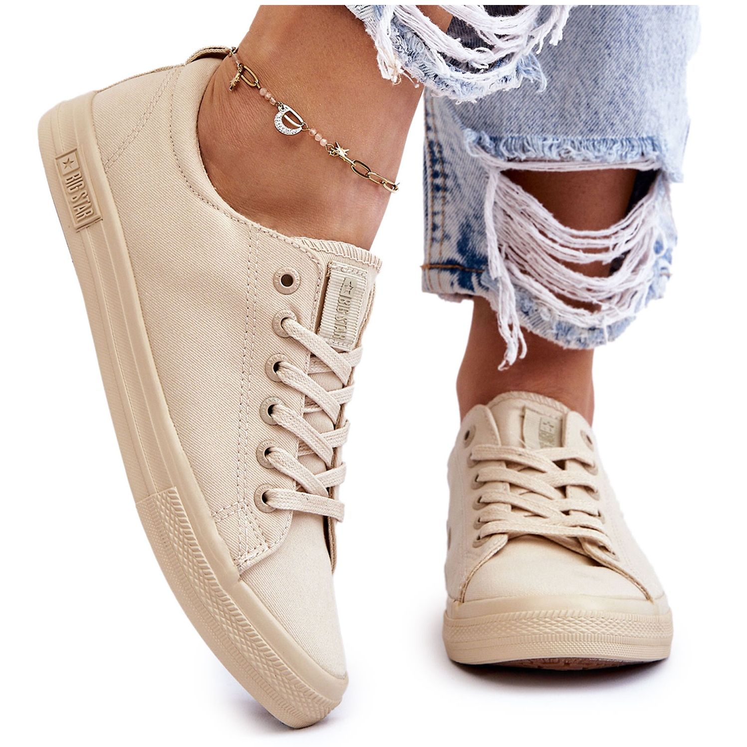 Részletek: Női sima alacsony tornacipő Big Star LL274061 bézs