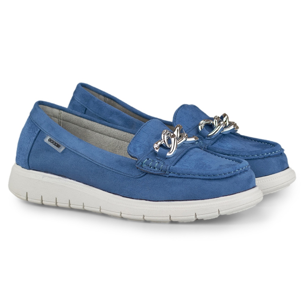 Egy további elem, amely megkülönbözteti ezeket a mokaszinokat, egy elegáns lánc, amely stílust és karaktert ad hozzájuk. A kék szín egy univerzális választás, amely tökéletesen illeszkedik a legkülönfélébb stílusokhoz – az alkalmitól az elegánsabbig.