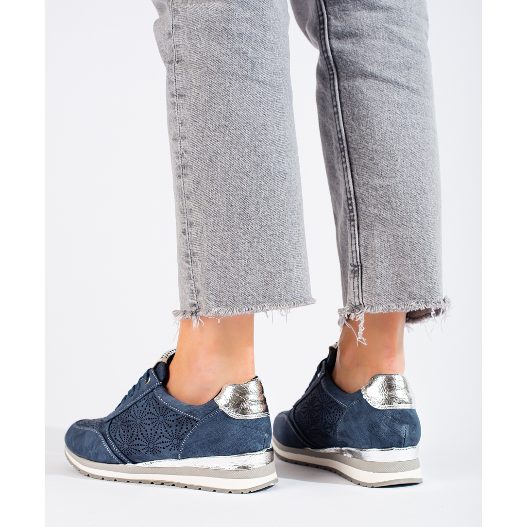 SHELOVET Női sötétkék Shelovet ékelt bőr tornacipő