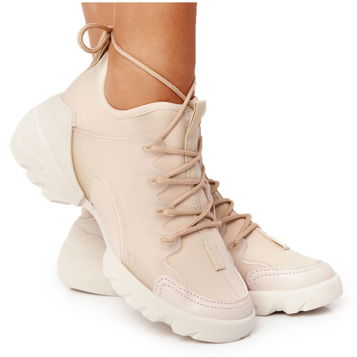 Fedezze fel az egyedi PS1 Sneakers női sportcipőt, amely tökéletes kiegészítője lesz ruhatárának. A stílusos bézs árnyalatú cipők a divatos dizájnt és a funkcionalitást ötvözik. Rugalmas, puha anyagból készült, tökéletesen stabilizálja a lábfejet, így egész napos viselési kényelmet biztosít.