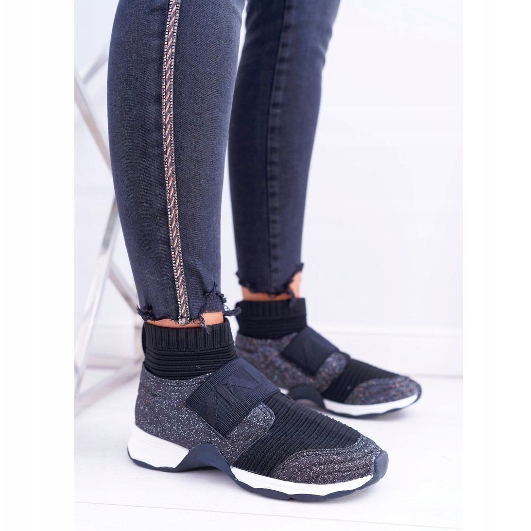 Részletek: Női sportcipő Lu Boo zoknival Fekete csillogó fantom