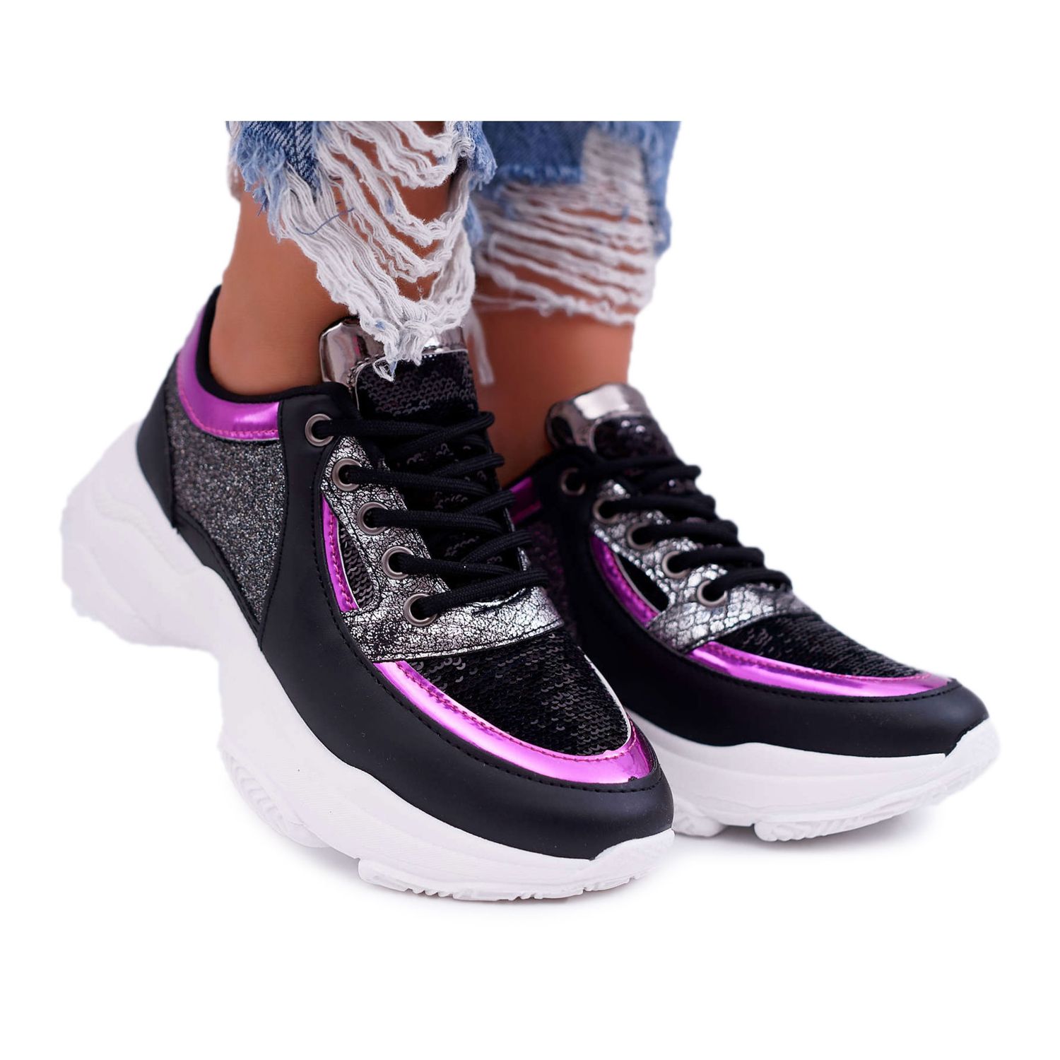 Női sportcipők Thick Sole Glitter Black Ranea szürke tökéletes választás azoknak a nőknek, akik értékelik az eredeti stílust és a mindennapi kényelmet. Egyedi dizájn jellemzi őket, amely egyesíti a divatos, sportos szabást és a szemet gyönyörködtető csillogó betéteket. A vastag, 5 cm magas talpnak köszönhetően ezek a cipők nem csak a megfelelő magasságot adják, hanem minden lépésnél kényelmet is biztosítanak.