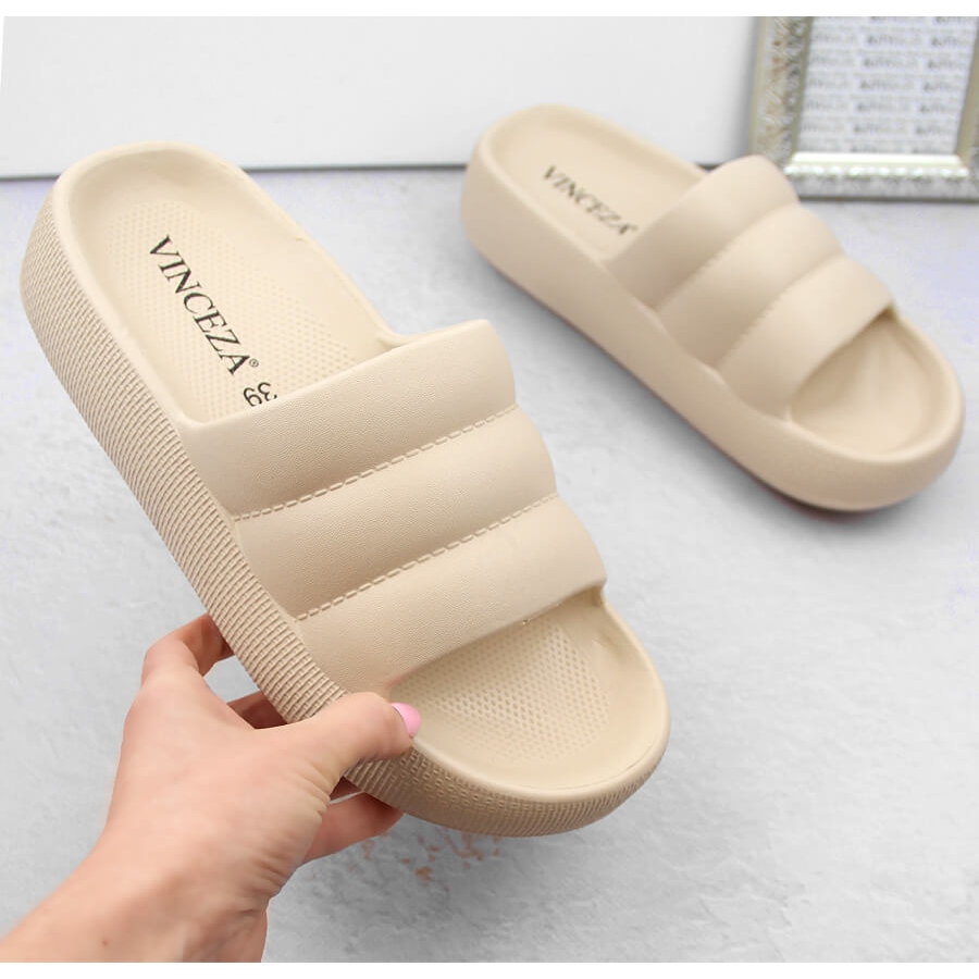 Részletek: Női steppelt platformpapucs, bézs Vinceza 75204