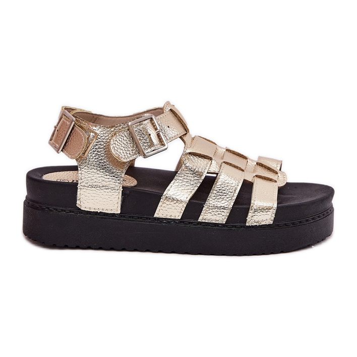 Fedezze fel az eleganciát és a modern stílust a női szandálokkal egy platformon, amelynek csatja van, egyedi arany árnyalatú. Ezek a divatos szandálok, amelyeket a Gladiators stílus ihlette, tökéletes megoldás a meleg napokhoz, nemcsak vonzó megjelenést kínálva, hanem páratlan viselési kényelmet is kínálva.