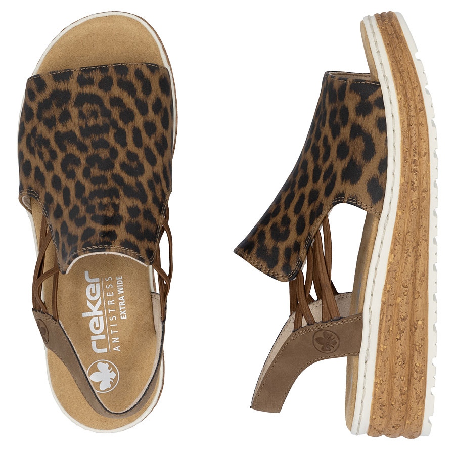 Találkozzon a rendkívül stílusos és kényelmes női szandálokkal a platformon a híres Rieker márkából, a 62741-90-es modellből származó leopárd nyomtatással. Ezek a könnyű és rugalmas cipők tökéletes választás azoknak a nőknek, akik értékelik a kényelmet és a divatos megjelenést.
