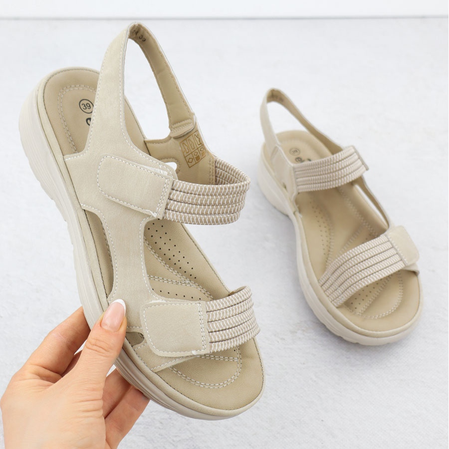 A 3 cm -es platform vastagsága megfelelő kényelmet biztosít a járáskor, és ugyanakkor hozzáad némi magasságot, és optikailag meghosszabbítja a lábakat. A szandálnak olyan sportos vágása van, amely tökéletesen illeszkedik a jelenlegi divat trendekhez, és univerzális bézs színük sok stílushoz illeszkedik, mind a mindennapi, mind az elegánsabb.