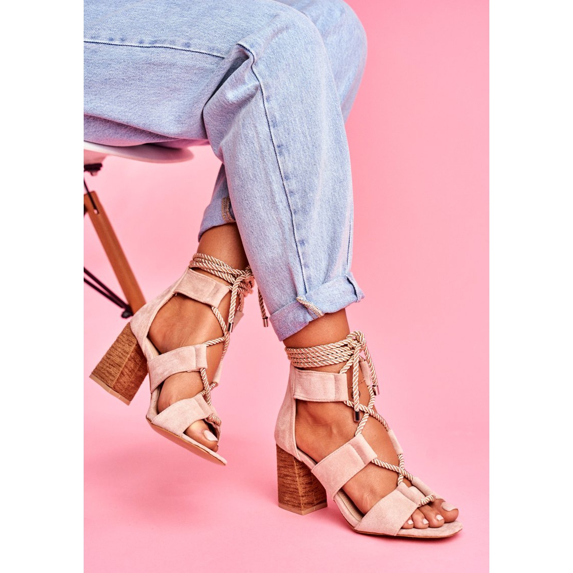 Részletek: SEA Női szandál a sarkán Kötve velúr Beige Amore bézs