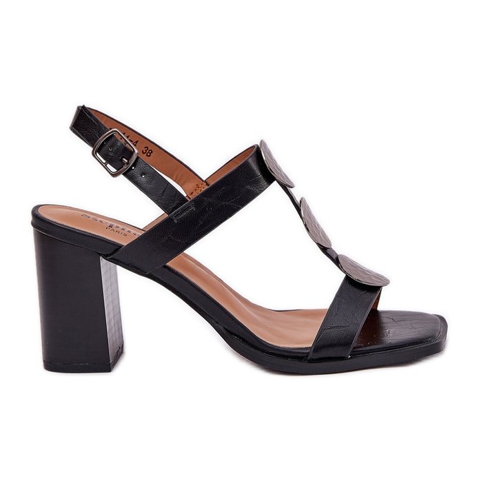 ** Női szandál egy oszlopon, dekoratív övvel fekete **