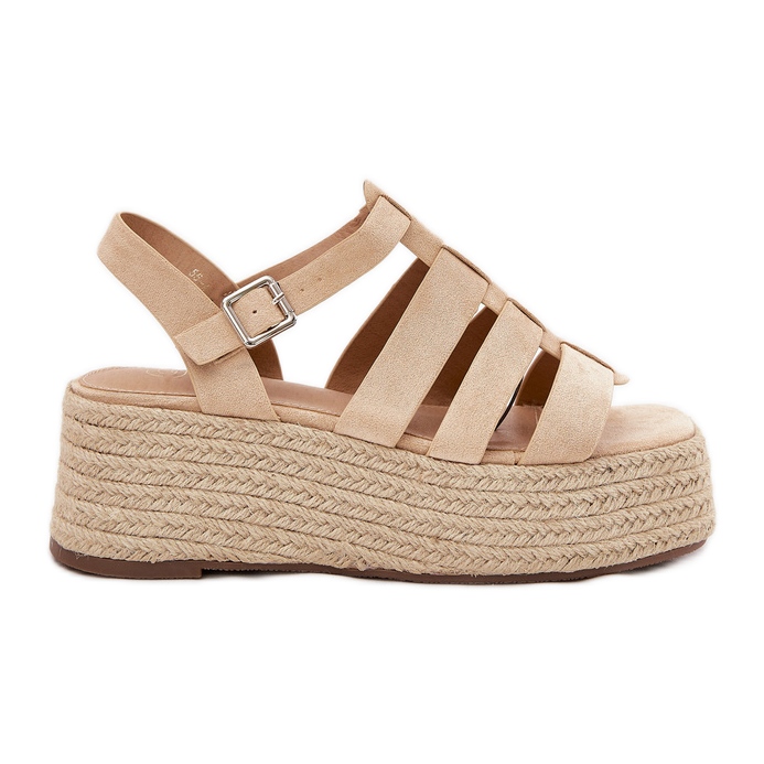 Részletek: Női szandál csíkokkal és zsinór bézs