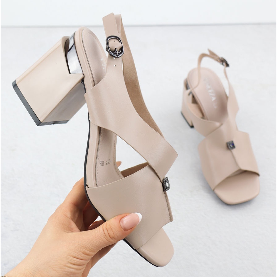 Ezt a modellt egy klasszikus vágás és egy szilárd oszlop jellemzi, amelynek magassága 8,5 cm, ami biztosítja a stabilitást és a kényelmet sétáláskor. Ezenkívül a szandálok a csat gyakorlati rögzítésével vannak felszerelve, amely lehetővé teszi, hogy tökéletesen illeszkedjen a lábához.