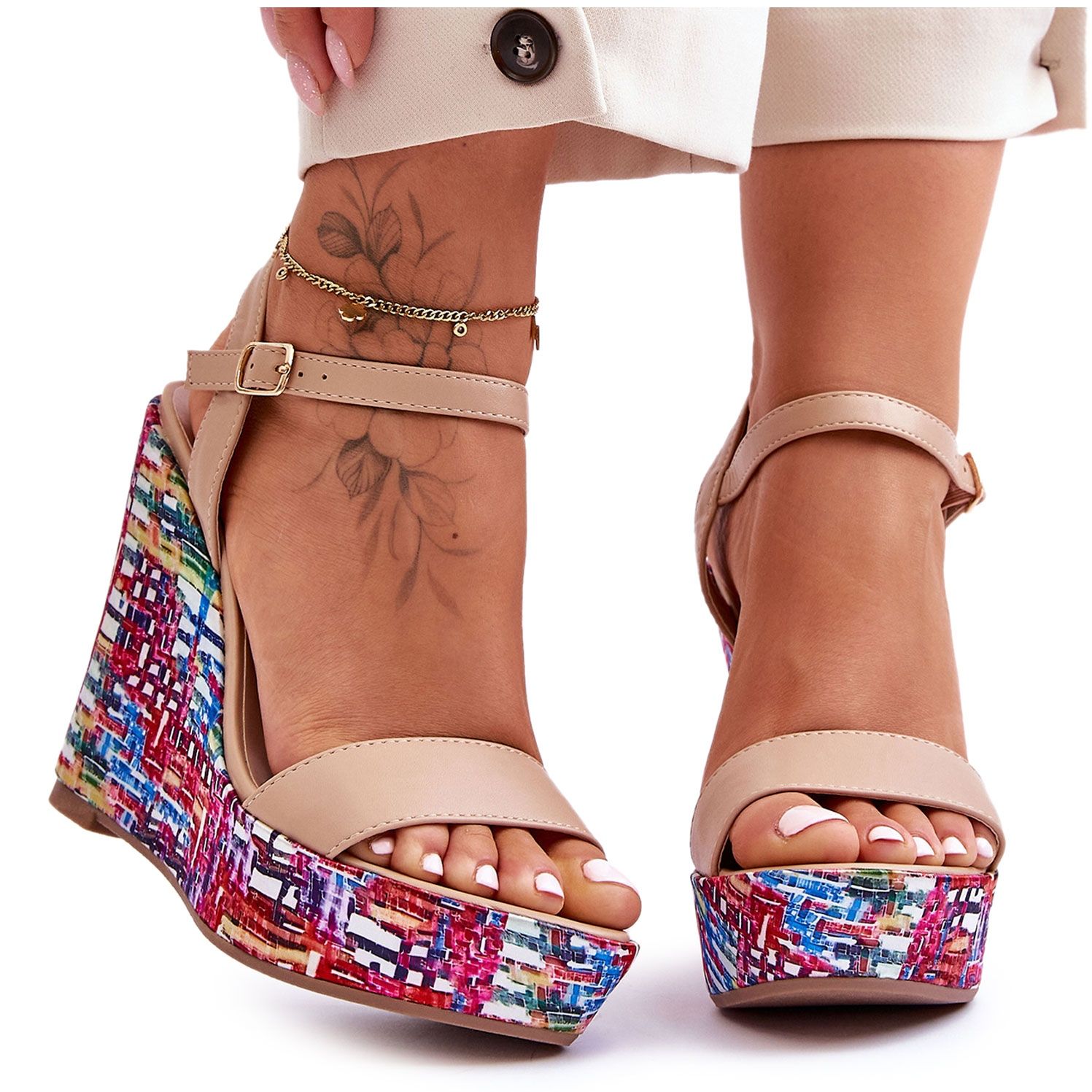 Részletek: Női Szandál Egy Színes Bézs Malibu Wedge