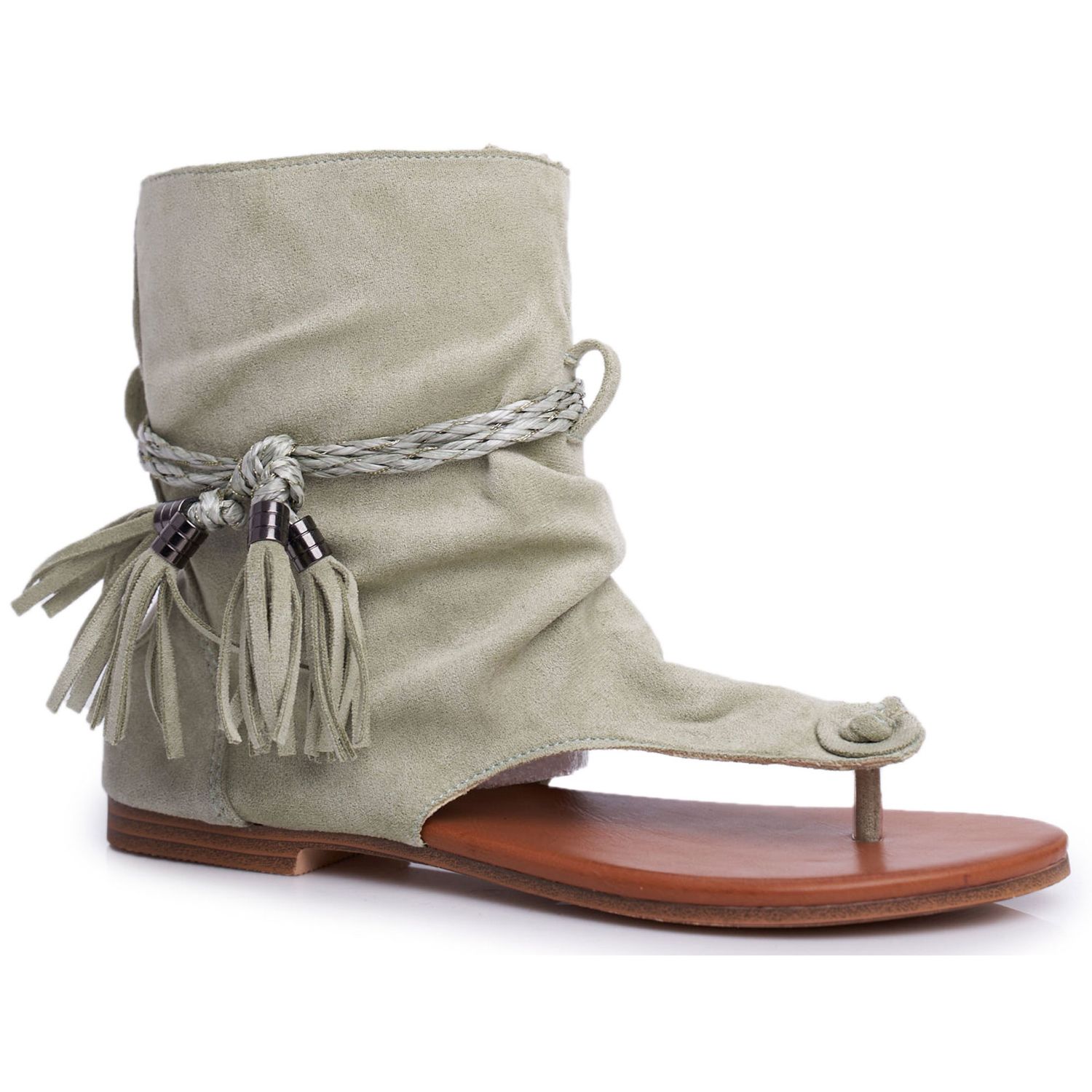 Ezek a szandálok nemcsak szokatlan megjelenésükkel tűnnek ki, hanem praktikus megoldásaikkal is. A magas felsőrész bájt és eleganciát ad, a rojtok pedig hangsúlyozzák modern karakterüket. Ökológiai velúrbőrből készültek, nem csak esztétikus megjelenést, hanem viselési kényelmet is biztosítanak. A szintetikus talp és az ökológiai talpbetét tökéletessé teszi őket a nyári napokon.