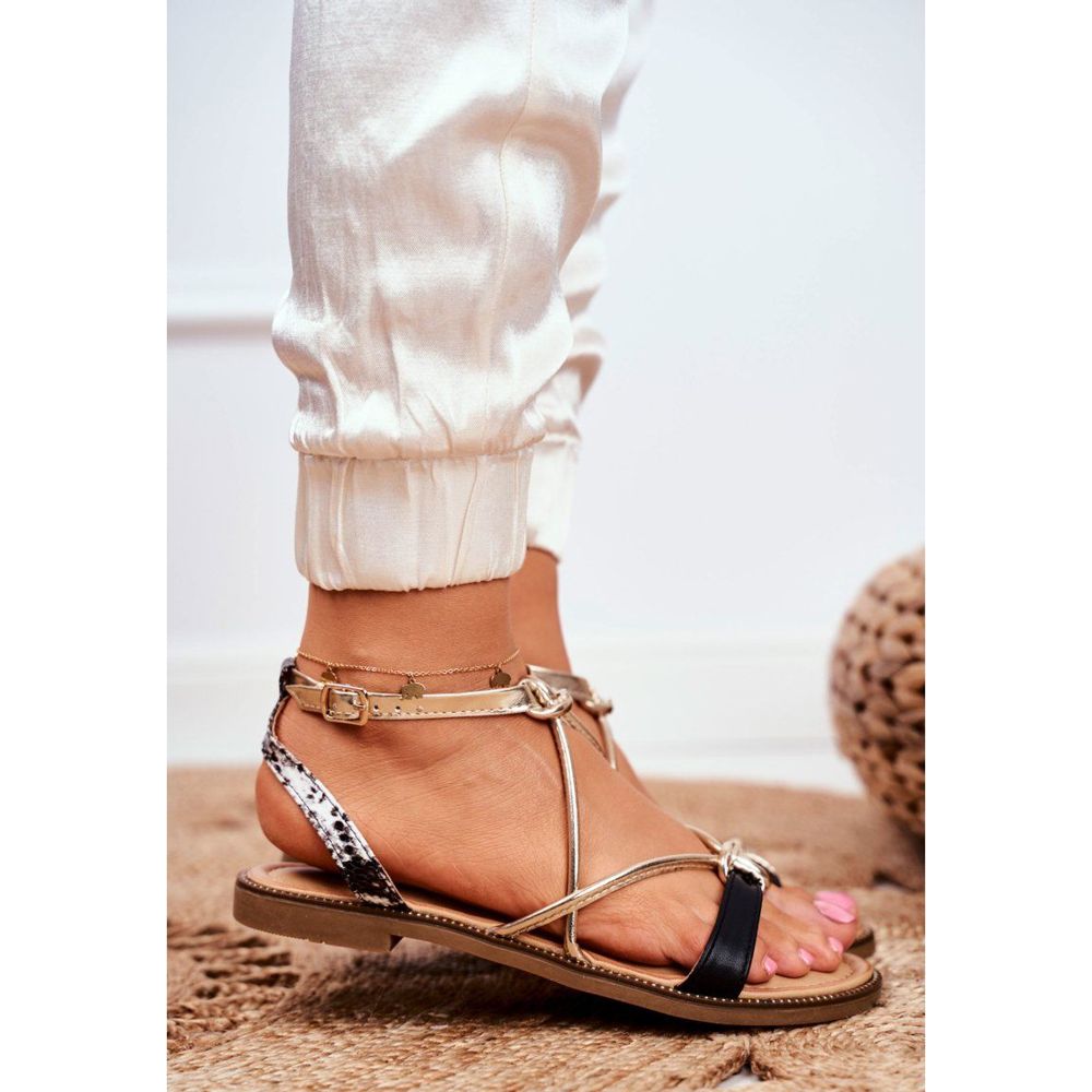 Részletek: S.Barski Női szandál lapos fekete és arany Barski Samim sárga