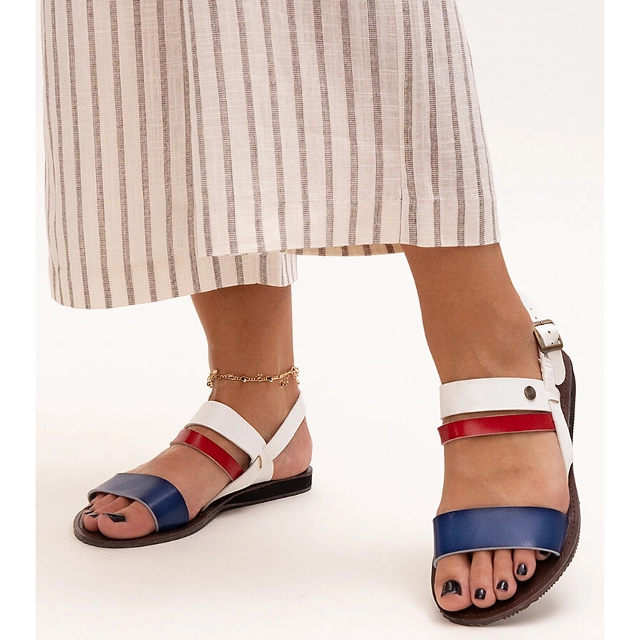 A 20SD77-1942-et egy klasszikus vágás jellemzi, ideális minden nyári alkalomra. A beillesztett kialakítás gyakorlati csatjával gyorsan és egyszerűen elhelyezi őket, és 1,5 cm magasságú, lapos sarok biztosítja a stabilitást a nap folyamán. A kék és a fehér színkombináció frissességet ad minden nyári stilizáláshoz, és a barna talp harmonikusan harmonizál az egészvel.