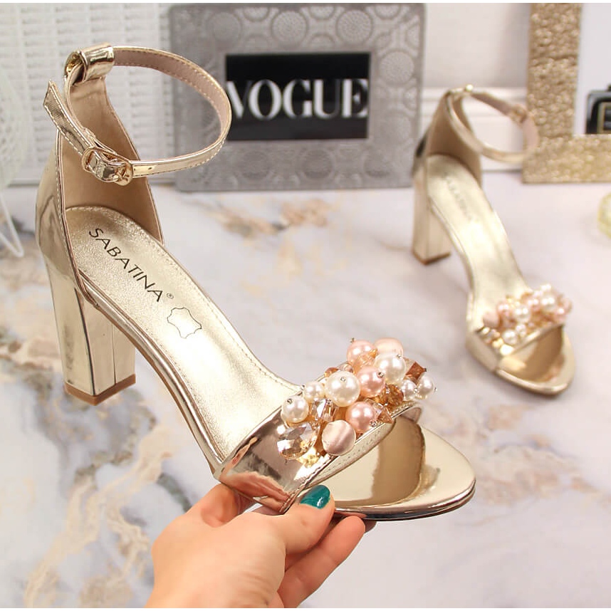 Részletek: Női szandál tüköroszlopon, arany gyöngyökkel Sabatina B185-2 aranysárga