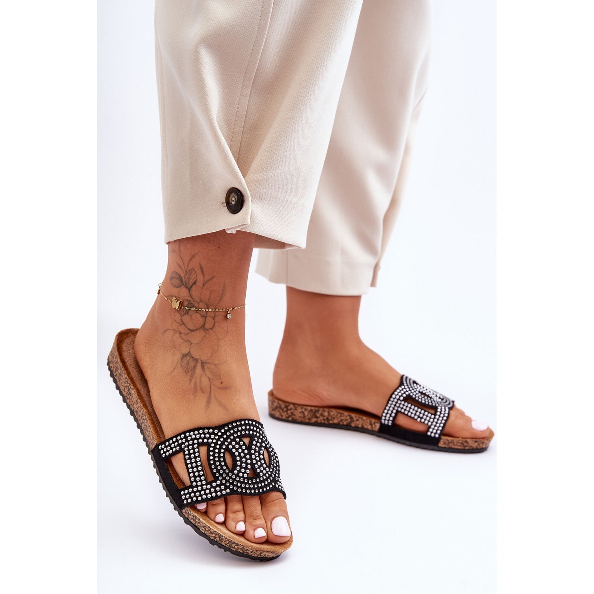 A nők papucsok, amelyek Evelins csapokkal vannak díszítve - fekete