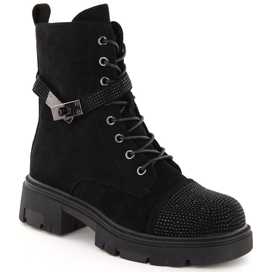 A csizma fekete színe rendkívül sokoldalú, így könnyen hozzáigazíthatja őket a különböző stílusokhoz - a mindennapi és az elegáns kimenetekig. A kerek lábujj és a felső felső kb. 16,5 cm magassága hangsúlyozza a divatos vágásukat. A 3 cm -es peron vastagsága kényelmes és stílusossá teszi őket, és a sarok magassága (5 cm) finom eleganciát ad. A szemfestő strasszok a felső oldalán nagyszerű módja annak, hogy a cipője örömmel élvezze a pompát!