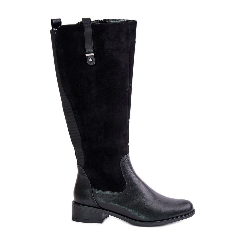 A csizmákat lekerekített orr jellemzi, amely biztosítja a kényelmet és a mozgás szabadságát. Felső 38,5 cm -es és 18,5 cm széles körben hatékonyan védi a borjak a hidegtől, és a szigetelt belső tér a lábbeli pengéből még a leghidegebb napokon is kellemes meleget garantál. A klasszikus fekete szín a csizmákat tökéletesen keveri a különböző stílusokkal, az alkalmi és az elegáns között.