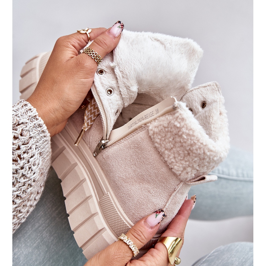 Részletek: Női szigetelt trapper csizma a platformon, bézs Alcyhen
