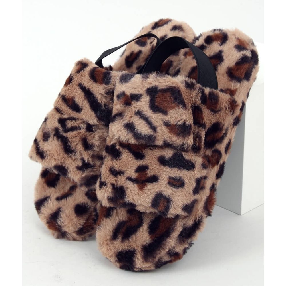 Részletek: Női szőrme papucs foltokkal N-92 Leopard bézs barna