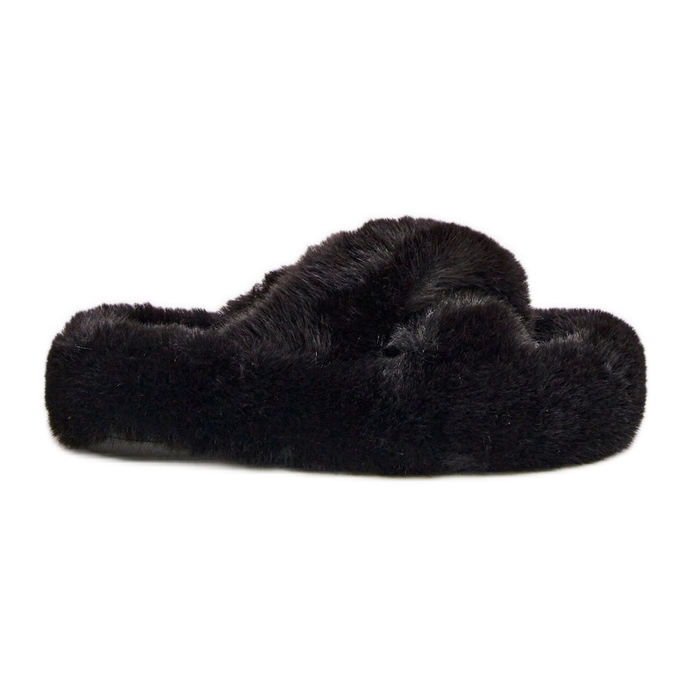 Inna marka Női szőrme papucs vastag talppal, fekete Lavitera