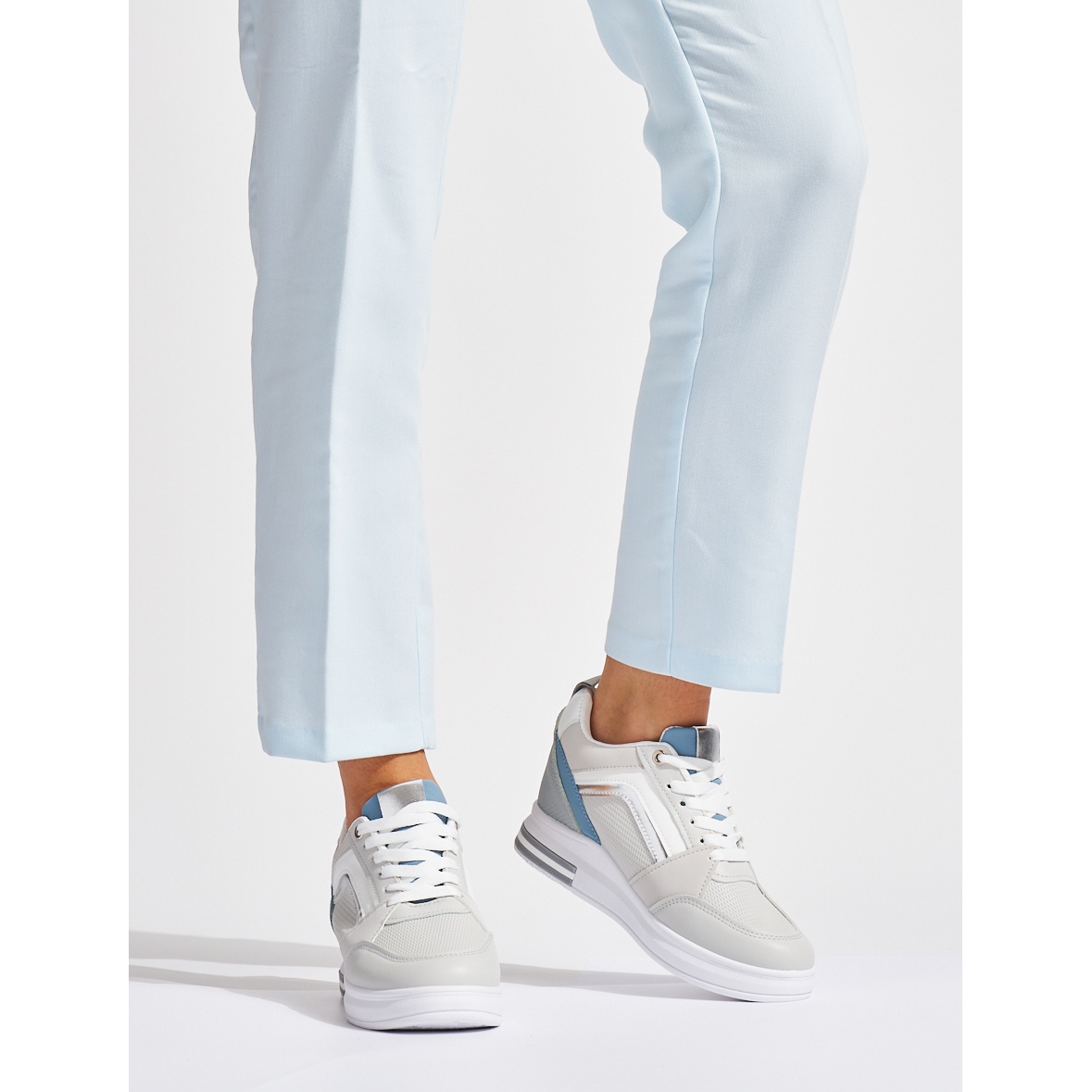 Fedezze fel a női cipők legújabb modelljét, ahol rejtett ék van egy másik márkából, amely ötvözi a sportstílust és az elegáns megjelenést. Ezek a szürke cipők minden nap nagyszerűek, nemcsak a magasságokat, hanem a stilizálás egyedi jellegét is.