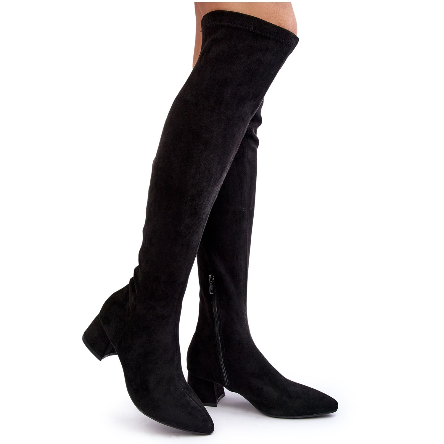 Részletek: Női térd feletti alacsony sarkú csizma fekete Maidna