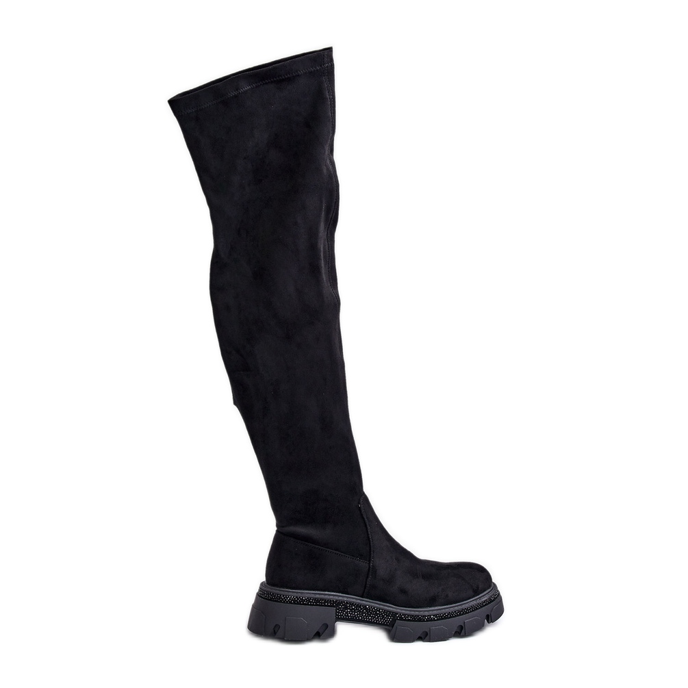 Részletek: Női térd feletti csizma Eco Suede fekete Irithalla