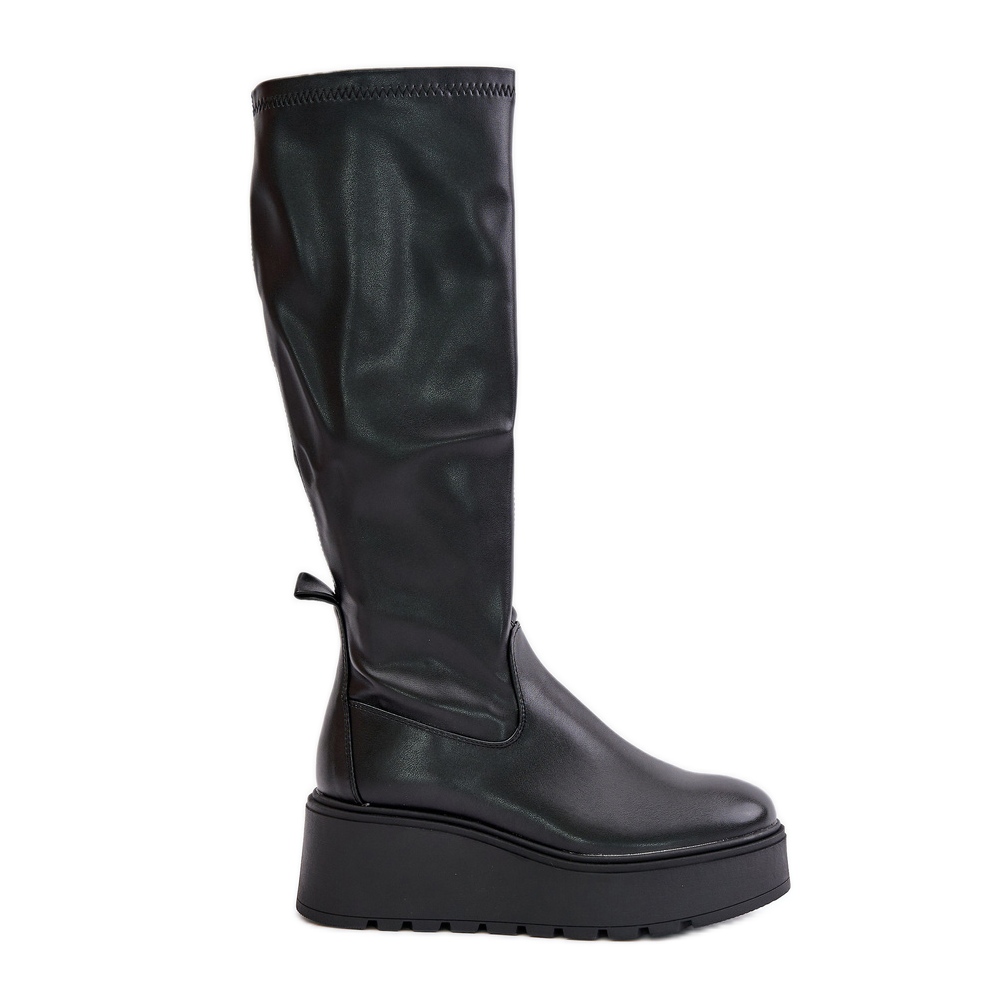 Részletek: Női térd feletti csizma emelvényen és éken Vinceza 58342 fekete