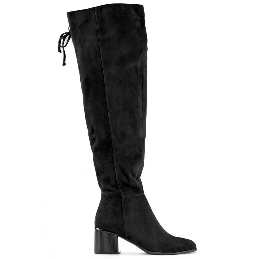 Részletek: Női térd feletti velúr csizma, fekete FL3002B
