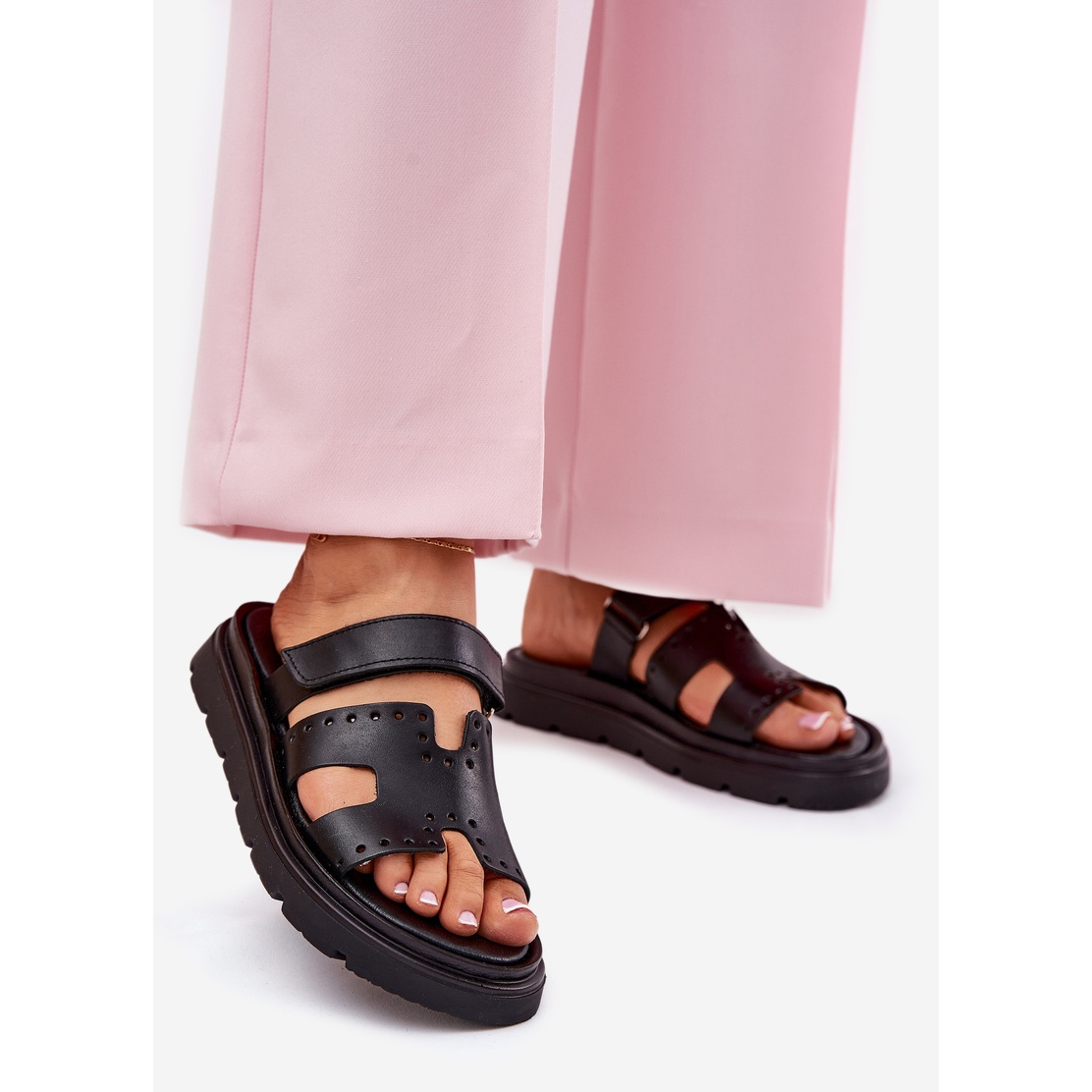 Részletek: Női természetes bőr papucs a Zazoo 40440 platformon fekete