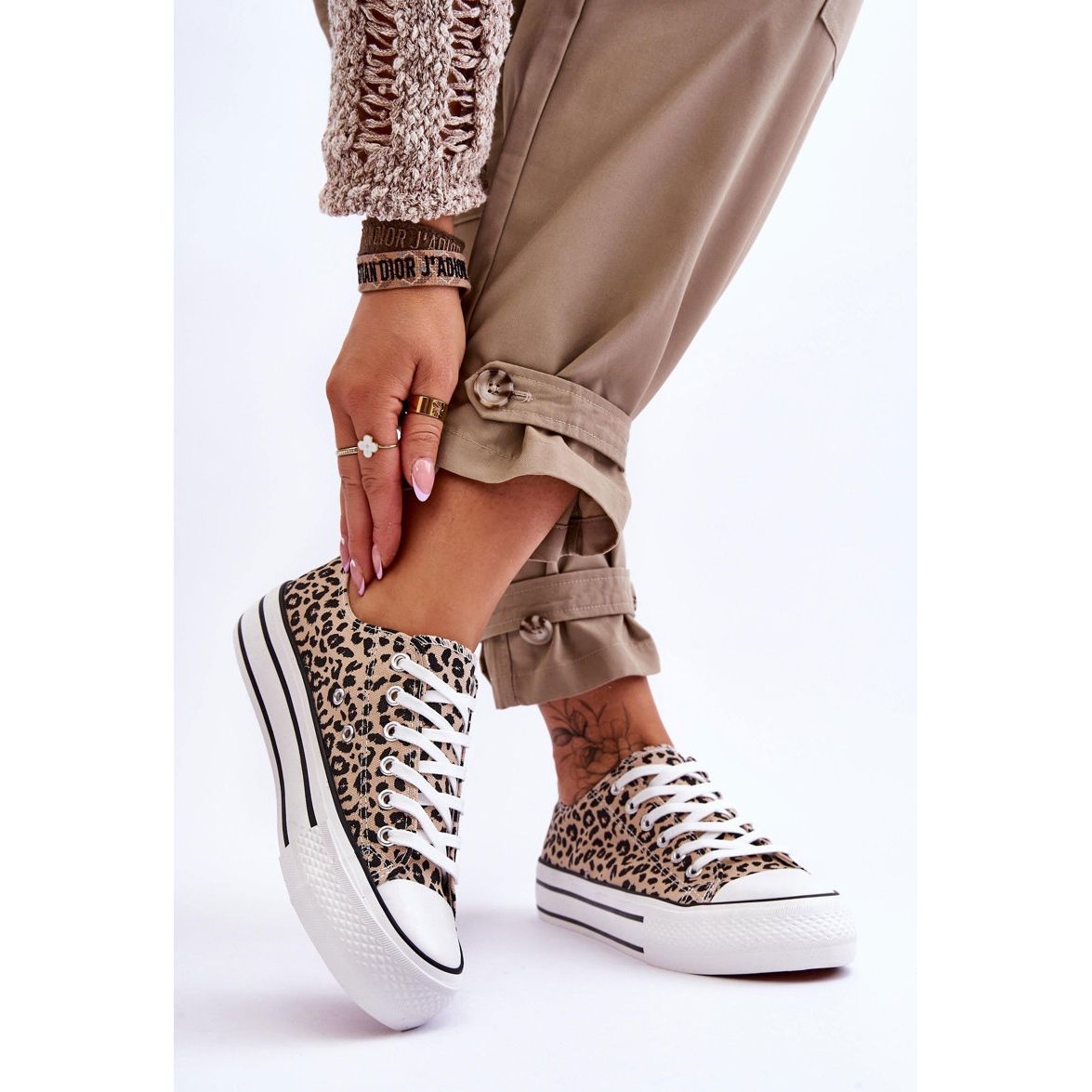 Inna marka Női tornacipő egy vaskos platformon bézs és fekete borsó