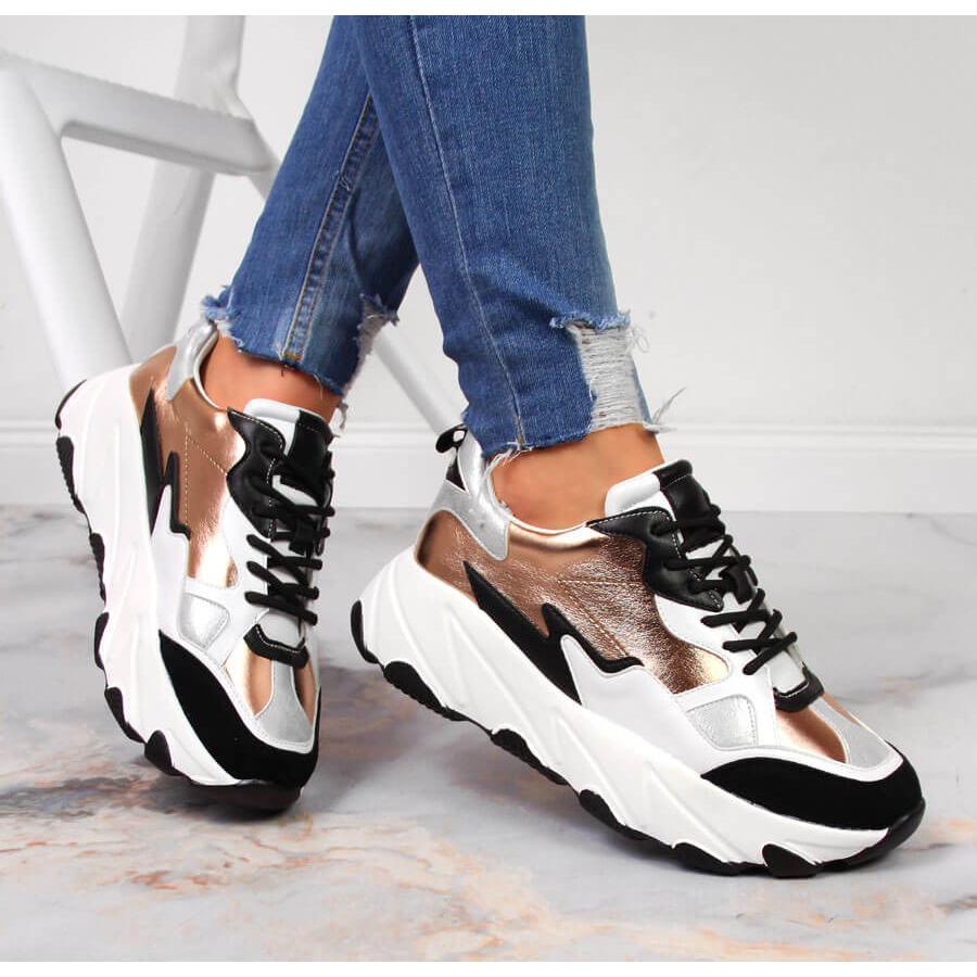 Részletek: Női tornacipő fehér és arany Potocki platformon aranysárga