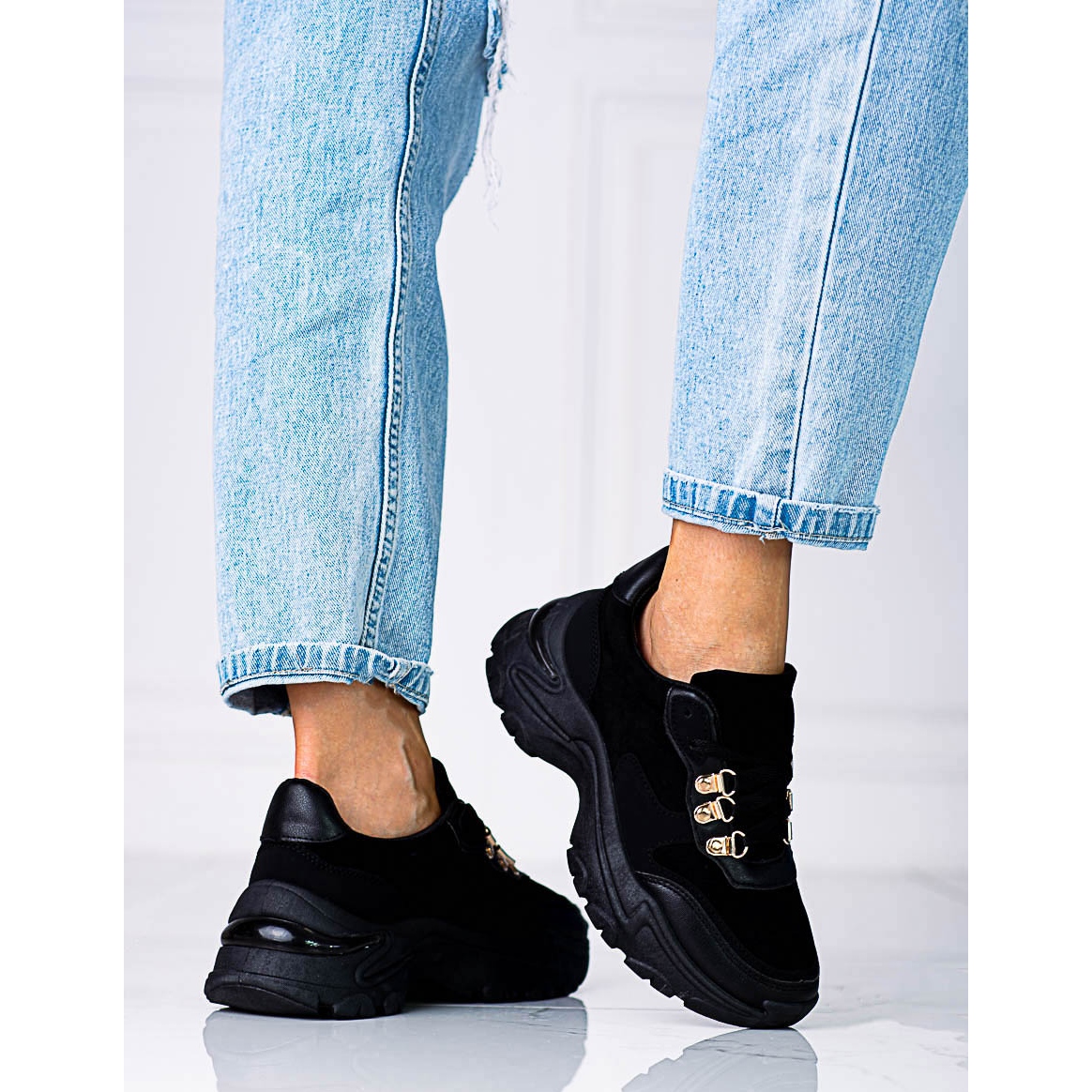 Részletek: Női tornacipő vastag Shelovet fekete talpon