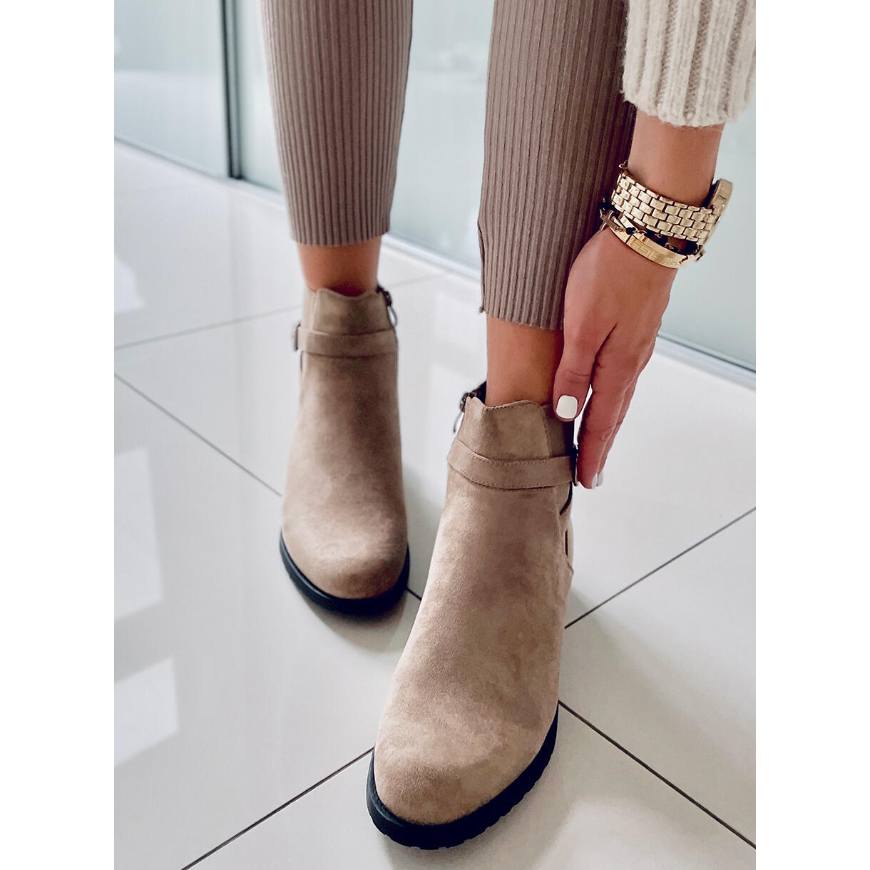 A Tourel Khaki Suede bokacsizmák elegáns bézs színben kaphatók, ami rendkívül univerzális ruhatári elemmé teszi. A kerek orr és a 3 cm-es lapos sarok biztosítja a mindennapi kényelmet, a szigetelés pedig a hidegebb napokon is növeli a viselési kényelmet.