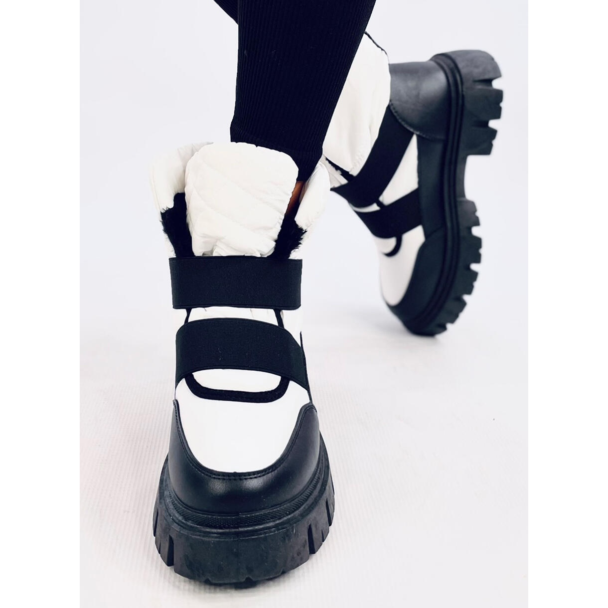 A beillesztésnek köszönhetően a cipő felállítása és leválasztása rendkívül egyszerű és kényelmes. A sima stílus és a minták hiánya miatt ezek a hócsizmák tökéletesen illeszkednek a különféle téli stílusokkal.