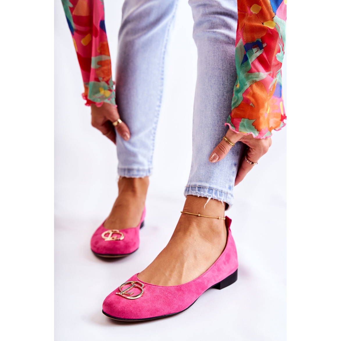 Női velúr balerinák Nicole 2746 fukszia színű díszítéssel, elegáns ajánlat a kényelmet és stílust értékelő nők számára. A kiváló minőségű természetes velúrból készült balettlaposok finoman lekerekített orrúak, amelyek finom és nőies megjelenést kölcsönöznek nekik. A modell felbújós, ami megkönnyíti a cipő fel- és levételét.
