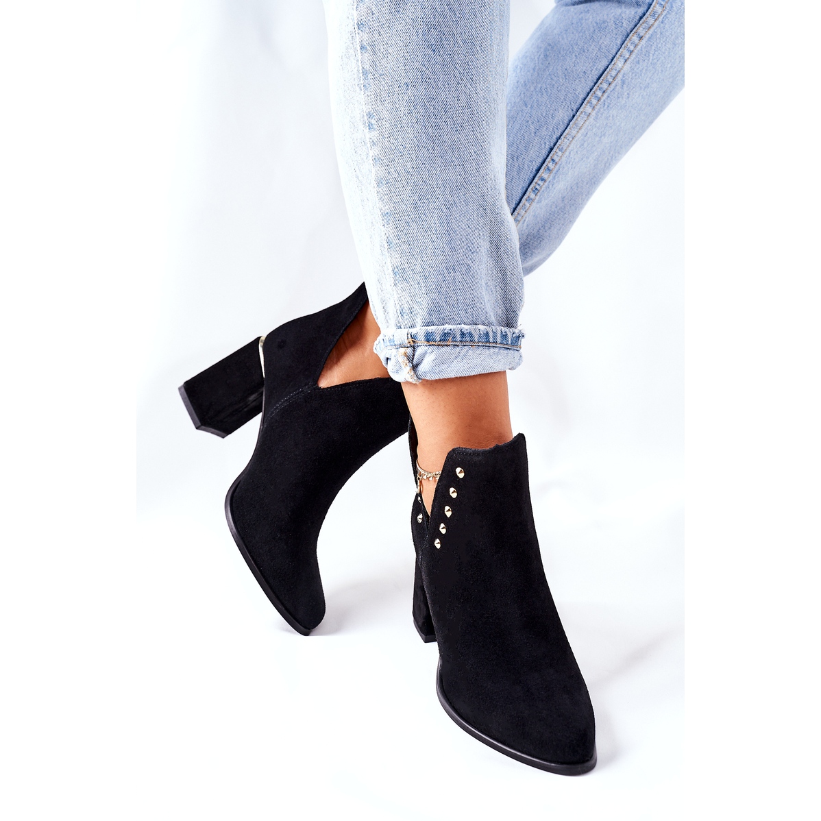 Részletek: Női velúr bokacsizma kivágásokkal és strasszokkal Lewski fekete 3075
