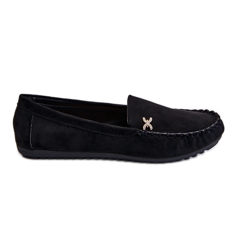Részletek: Női velúr cipők fekete Leah díszítéssel