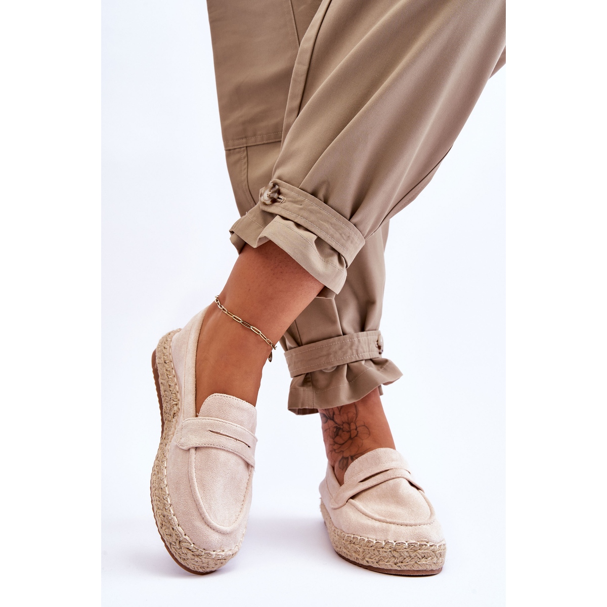 Elegáns és kényelmes, FI1 női velúr Espadrilles Light Beige Keyla tökéletes lábbeli a tavaszi és nyári szezonban. A legjobb minőségű eco velúrból készült cipők lehetővé teszik, hogy egész nap élvezhesd a kényelmet és a stílust.