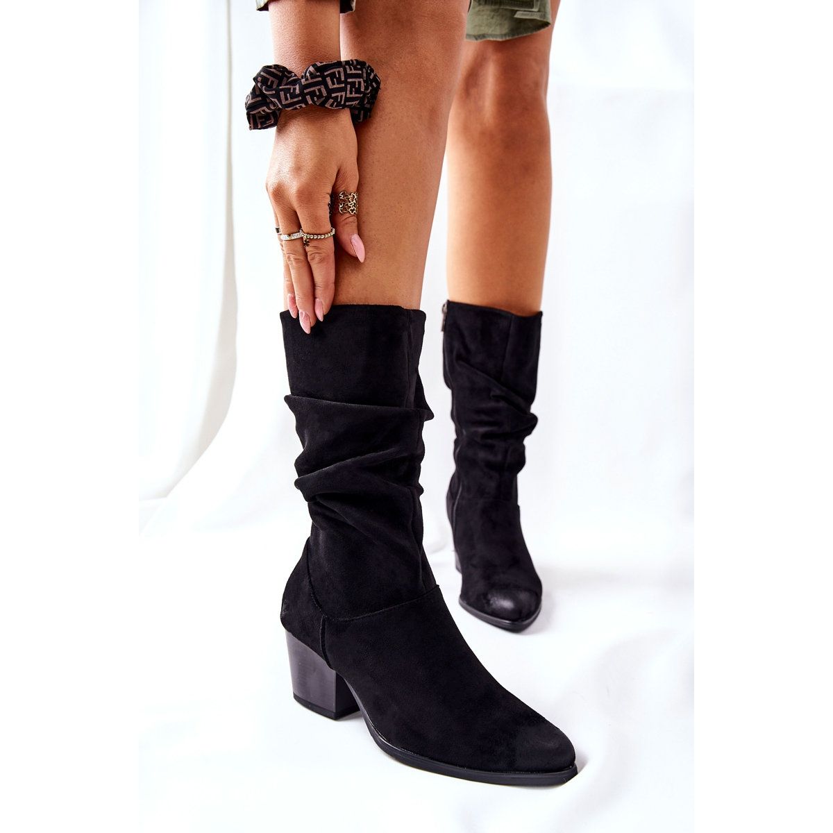 Ezek a Vinceza csizmák, amelyek ötvözik az eleganciát és a kényelmet. A környezetbarát velúr bőrből készült fekete csizma tökéletes választás az őszi/téli szezonra. A klasszikus szabású, hegyes lábujjak és az oldalsó cipzár nemcsak stílusossá, hanem rendkívül funkcionálissá is teszi őket.