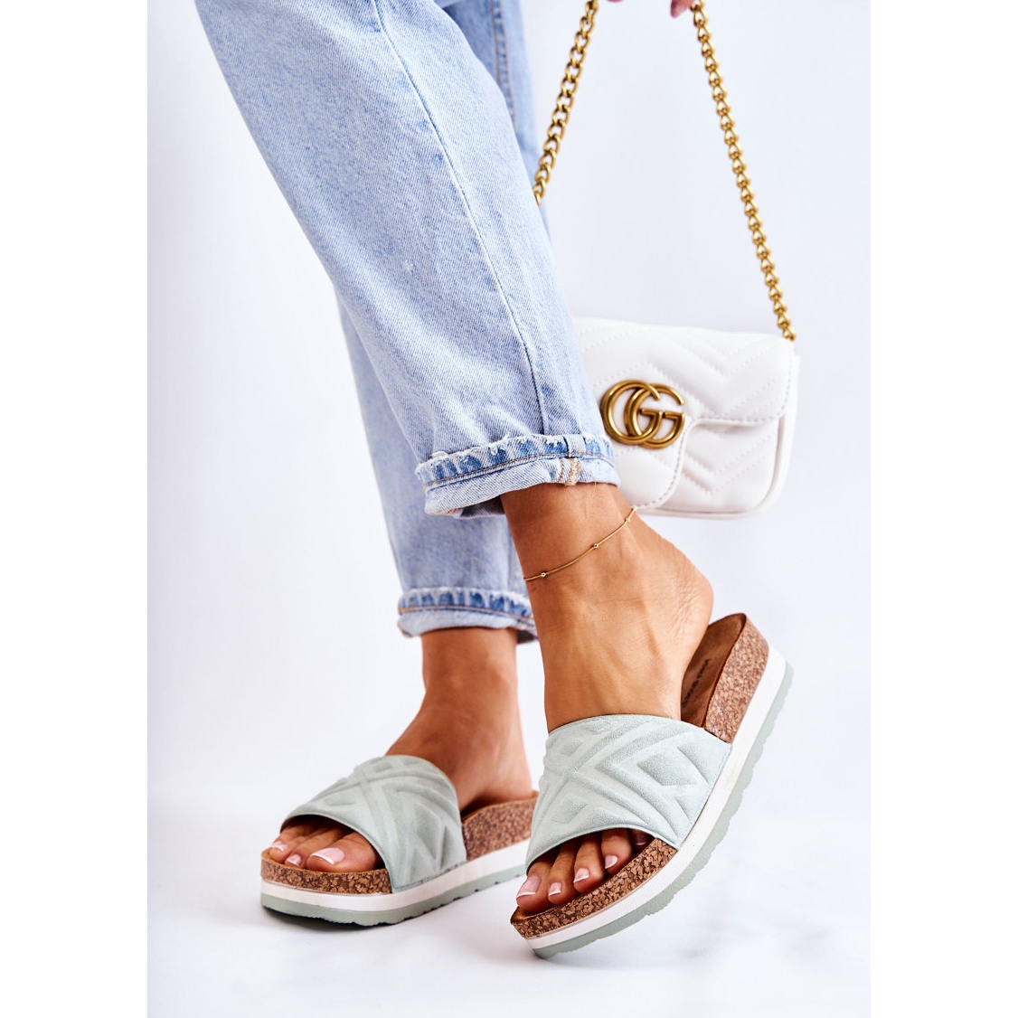 Részletek: PG1 Női velúr papucs egy hatalmas zöld Heritta platformon