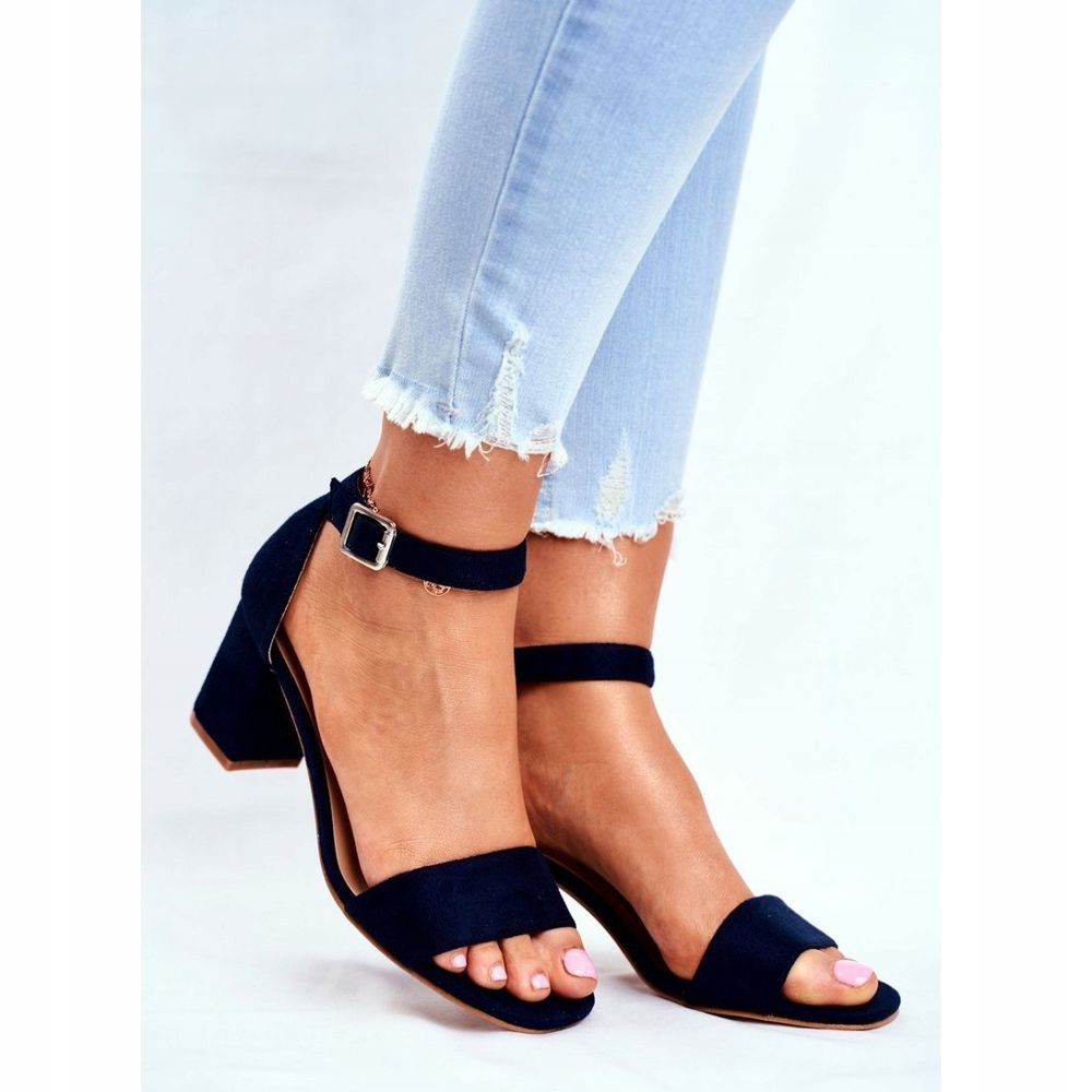 A stabil, alacsony, 7,5 cm magas oszlop tökéletesen megemeli a figurát, finoman kiemelve azt. A félmatt velúr sötétkék színe eleganciát kölcsönöz nekik, és könnyen kombinálhatóvá teszi őket különféle stílusokkal. A szandál kiváló minőségű anyagokból készült: a külső része ökológiai velúr bőr, a talpbetét pedig puha ökológiai bőr, amely biztosítja a kényelmet viselésekor.