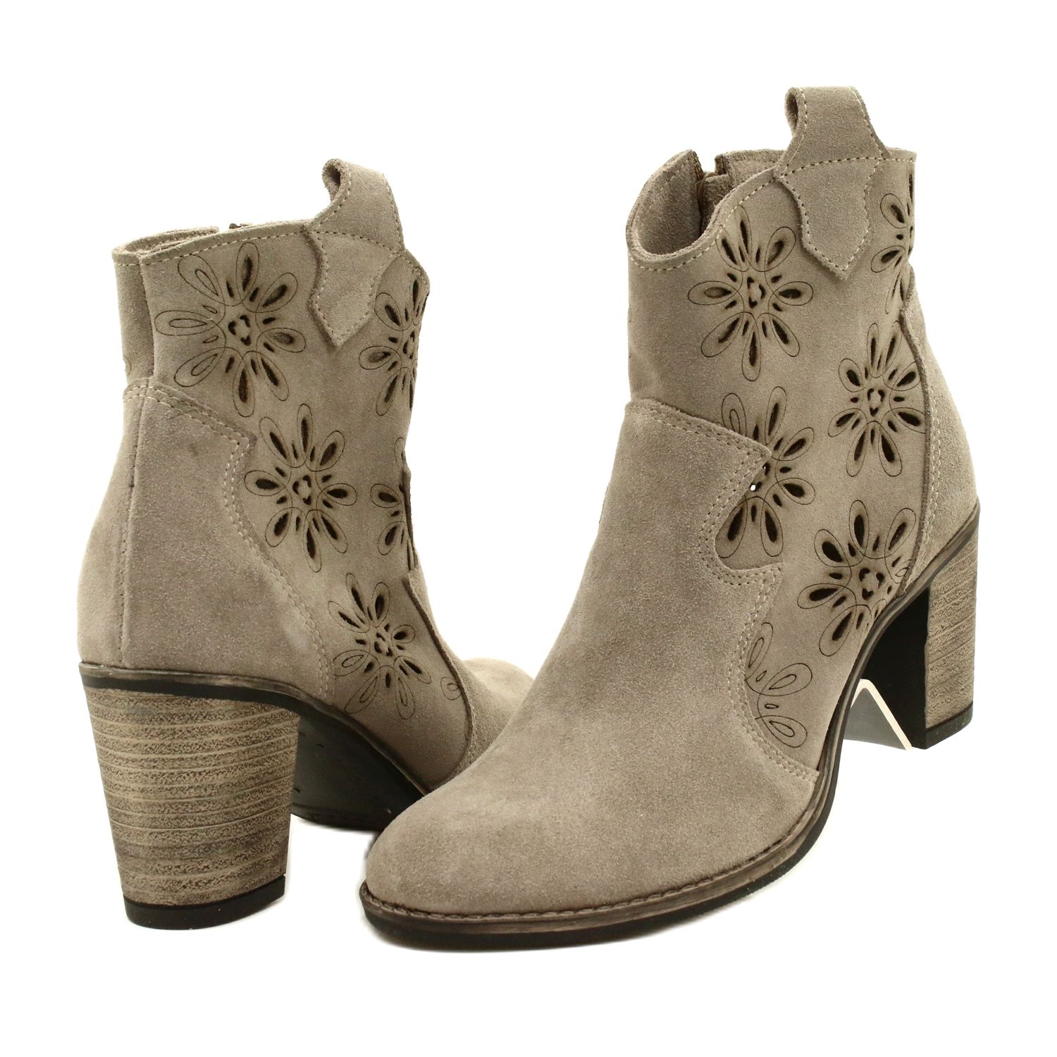 Részletek: Olivier Nyílt munkás női bőrcsizma világosszürke bézs